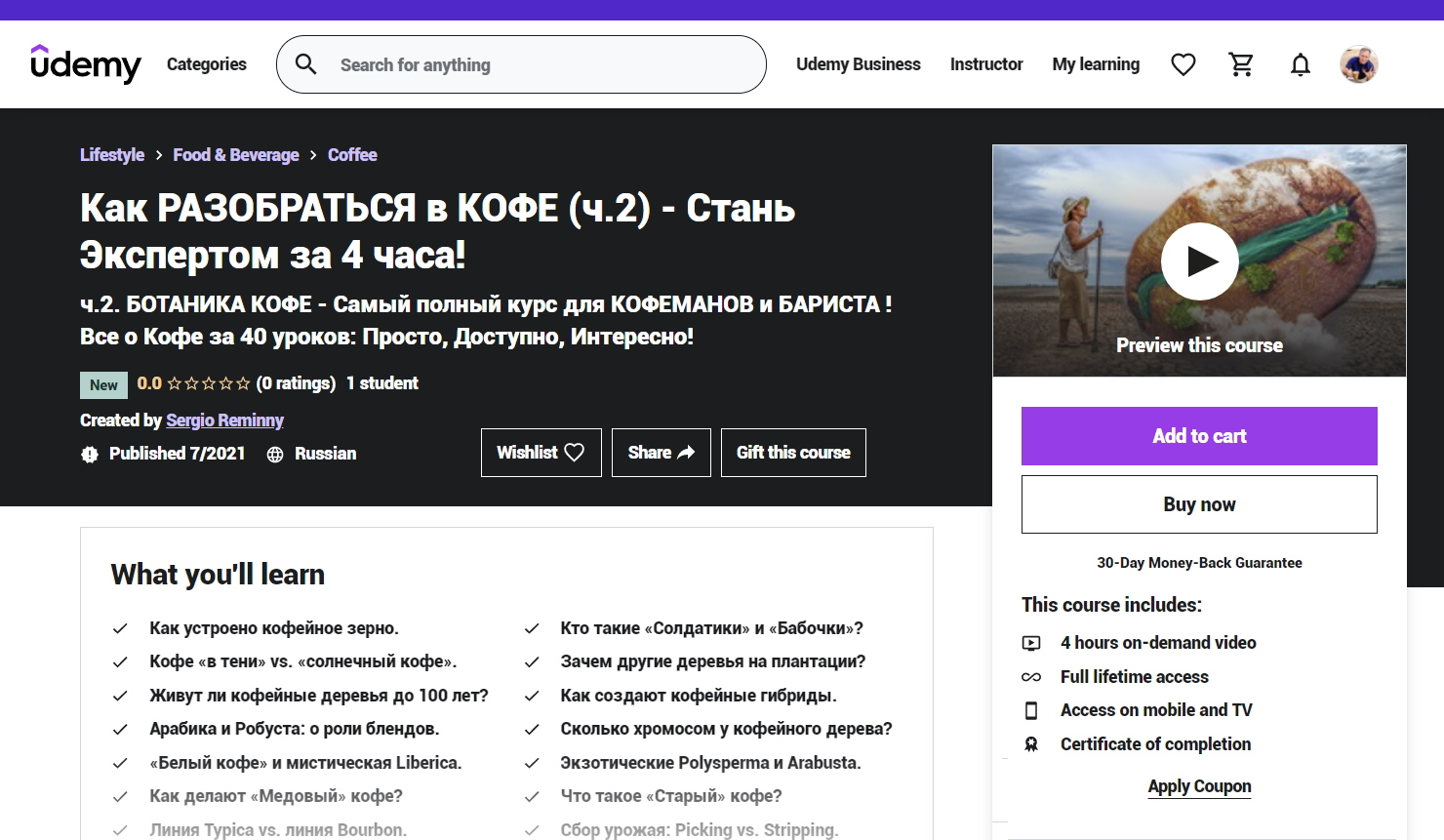 Уверяю Вас, что после прохождения этого курса уровень Ваших кофейных знаний поднимется на новую высоту.